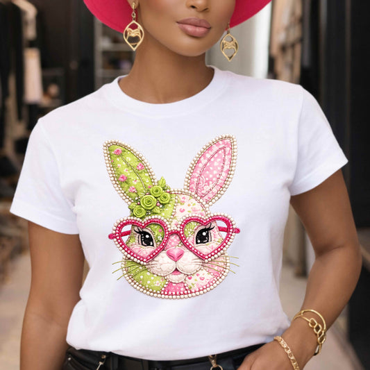 Faux Pastel Patchwork and Pearls Bunny T-Shirt