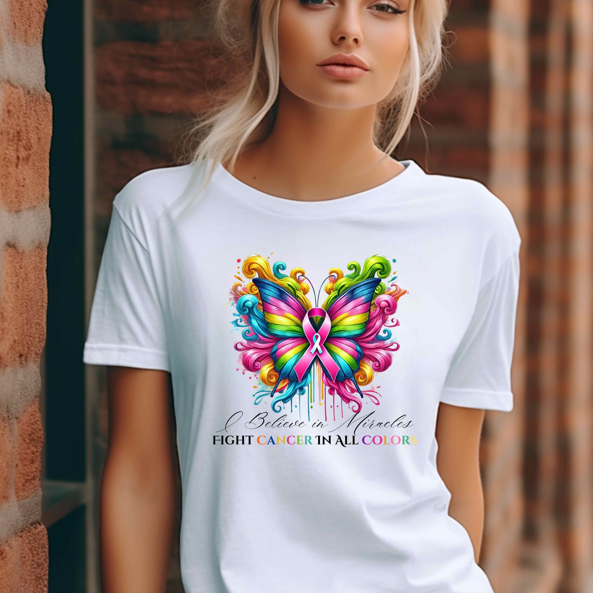 Stand out and show your support for breast cancer awareness with our Beautiful Butterfly T-Shirt. The design features a vibrant and eye-catching butterfly, symbolizing hope and strength. Made from soft and comfortable fabric, this shirt is also a comfortable and stylish addition to your wardrobe. Be a part of the cause with our beautiful t-shirt.