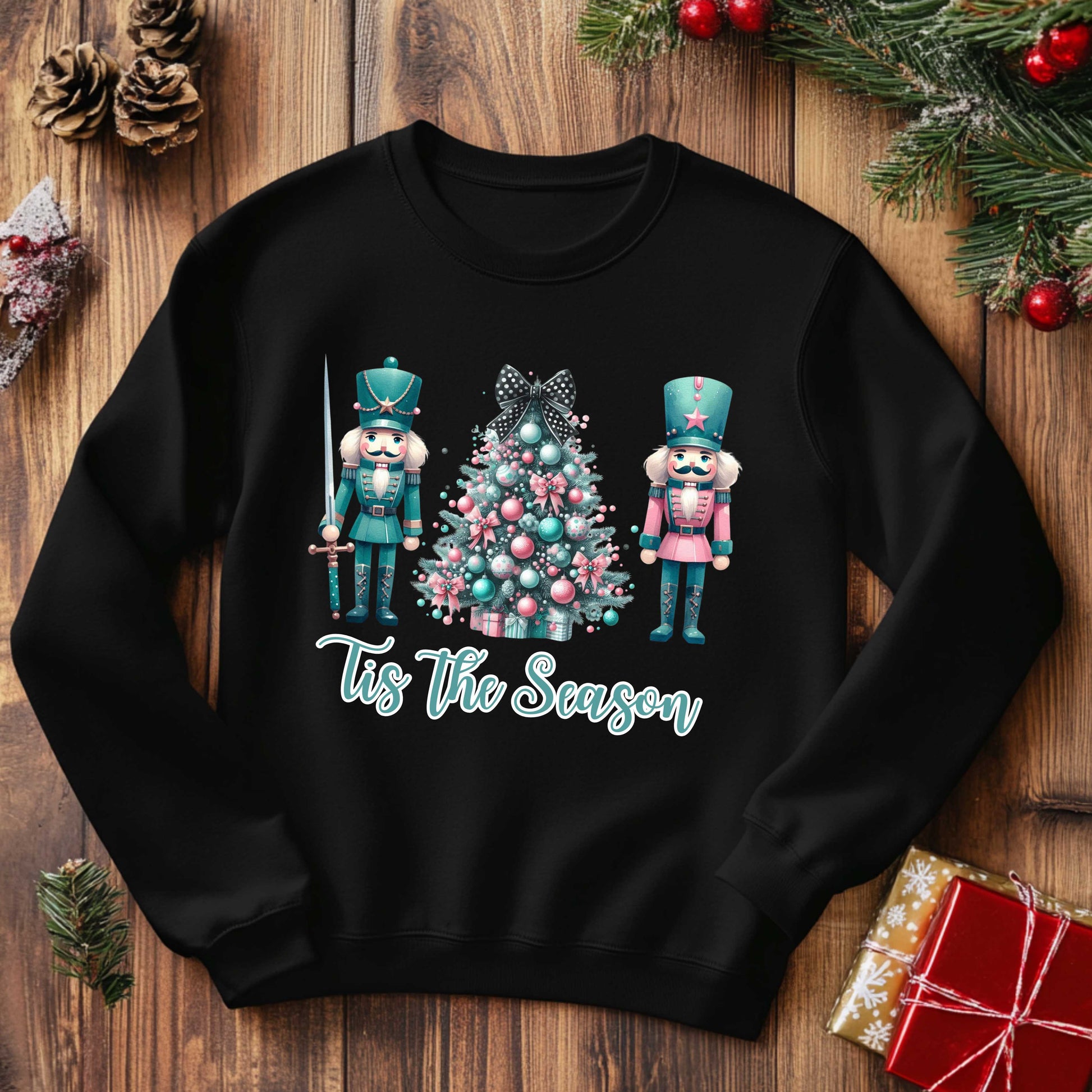 Christmas Pink and Teal Nutcracker Inspired Crewneck Pullover Sweatshirt