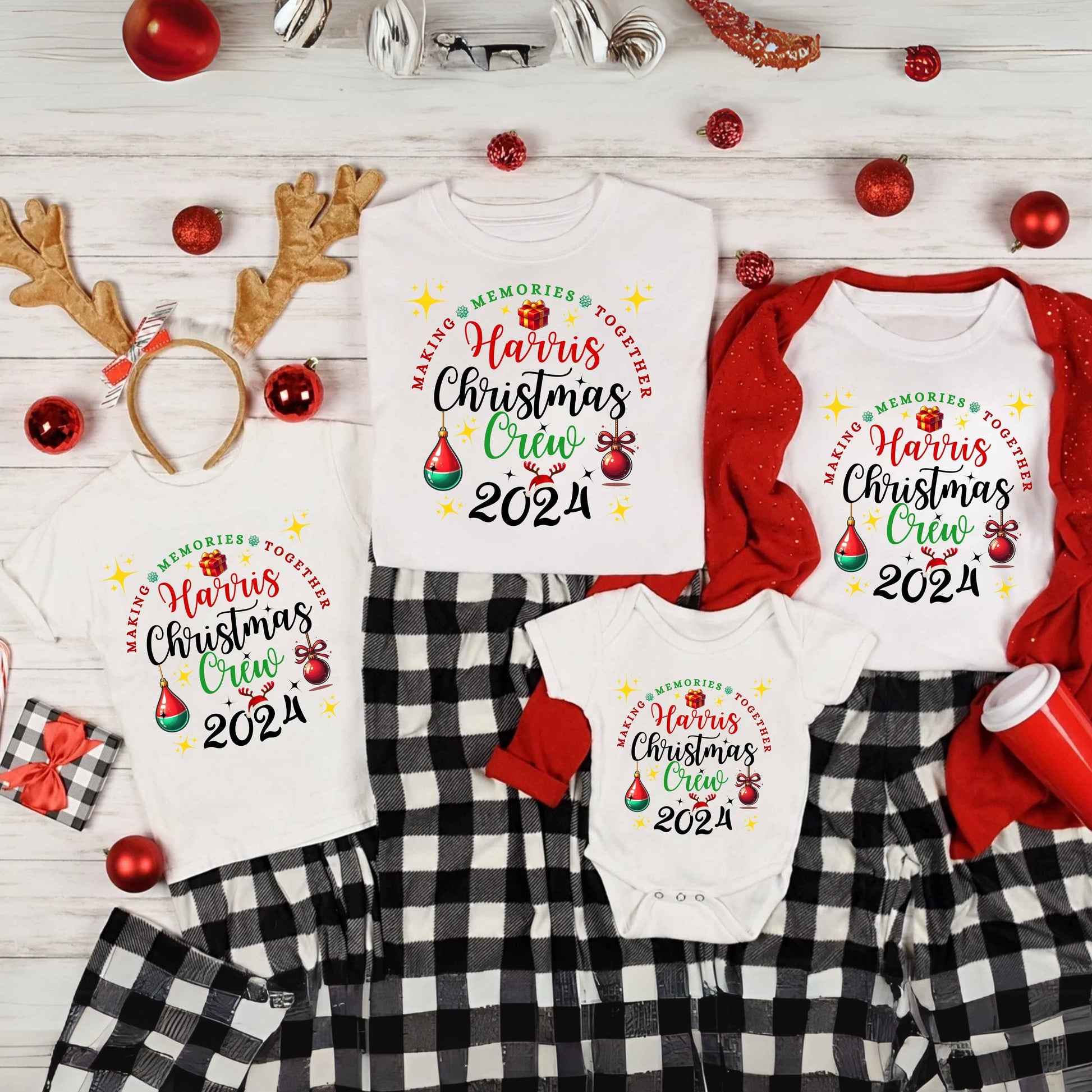 This is a customizable Family Christmas Sweatshirt design. We can make infant sizes up to 5X. Please contact us with the name of your family along with the shirt sizes you need and one of our friendly customer service representatives will assist you in placing your order.