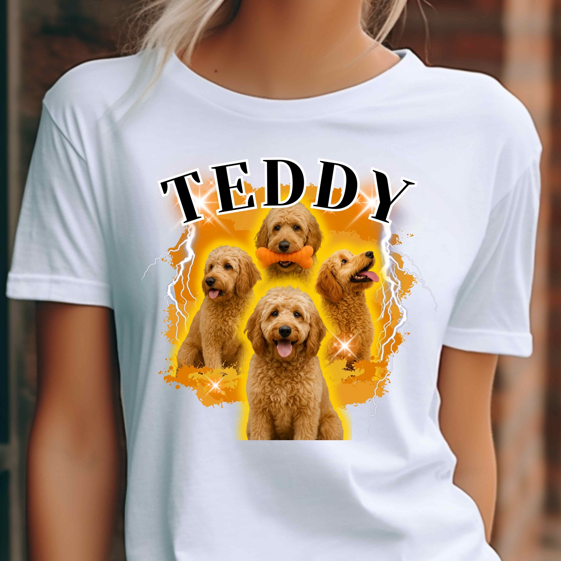 Honor your beloved pet with our Customizable Pet & Dog TShirt featuring a retro bootleg design. This unique remembrance gift transforms your cherished memories into wearable art. Perfect for dog lovers who want to keep their furry friend close to their heart. Personalize with your pet's image for a meaningful keepsake that celebrates your special bond.