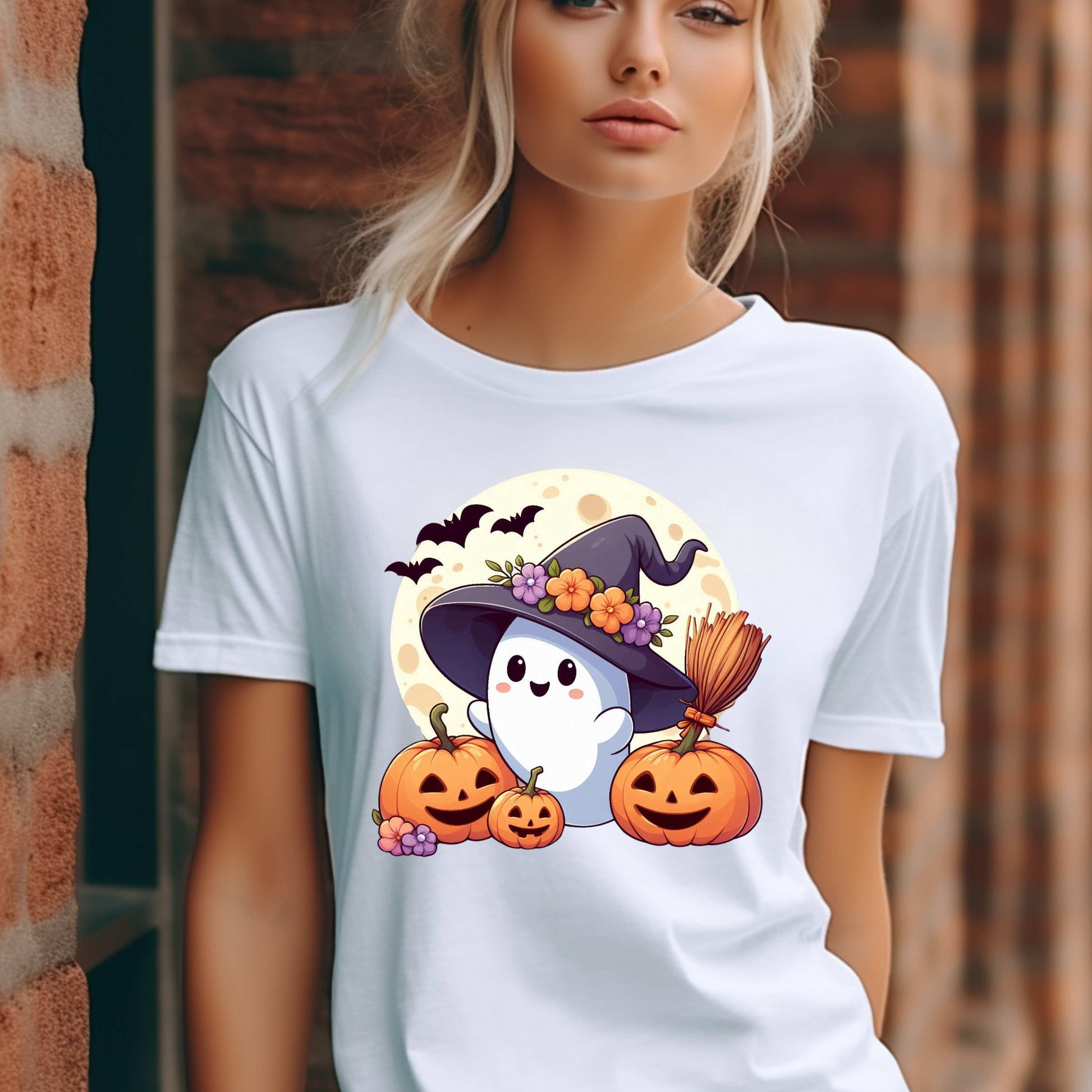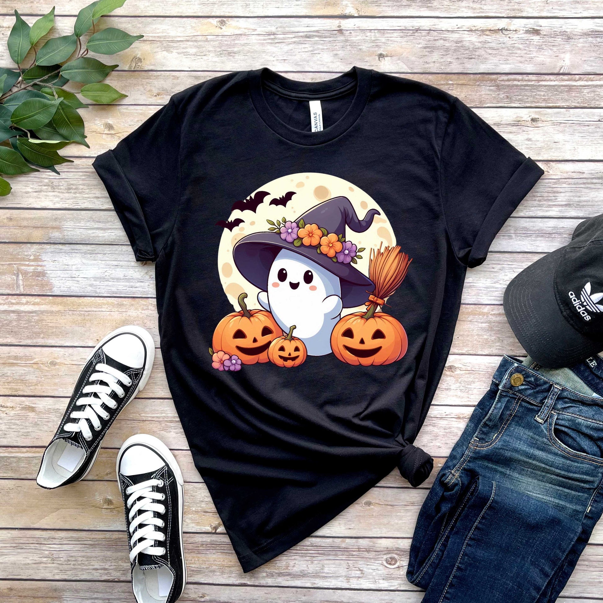 This Cute Moon Ghost Pumpkin Halloween T-Shirt is perfect for adding a spooky touch to your wardrobe! Made with high-quality fabric and featuring a cute design of a ghost, moon, and pumpkin, this shirt will bring a fun and festive vibe to your Halloween celebrations. Get yours today!