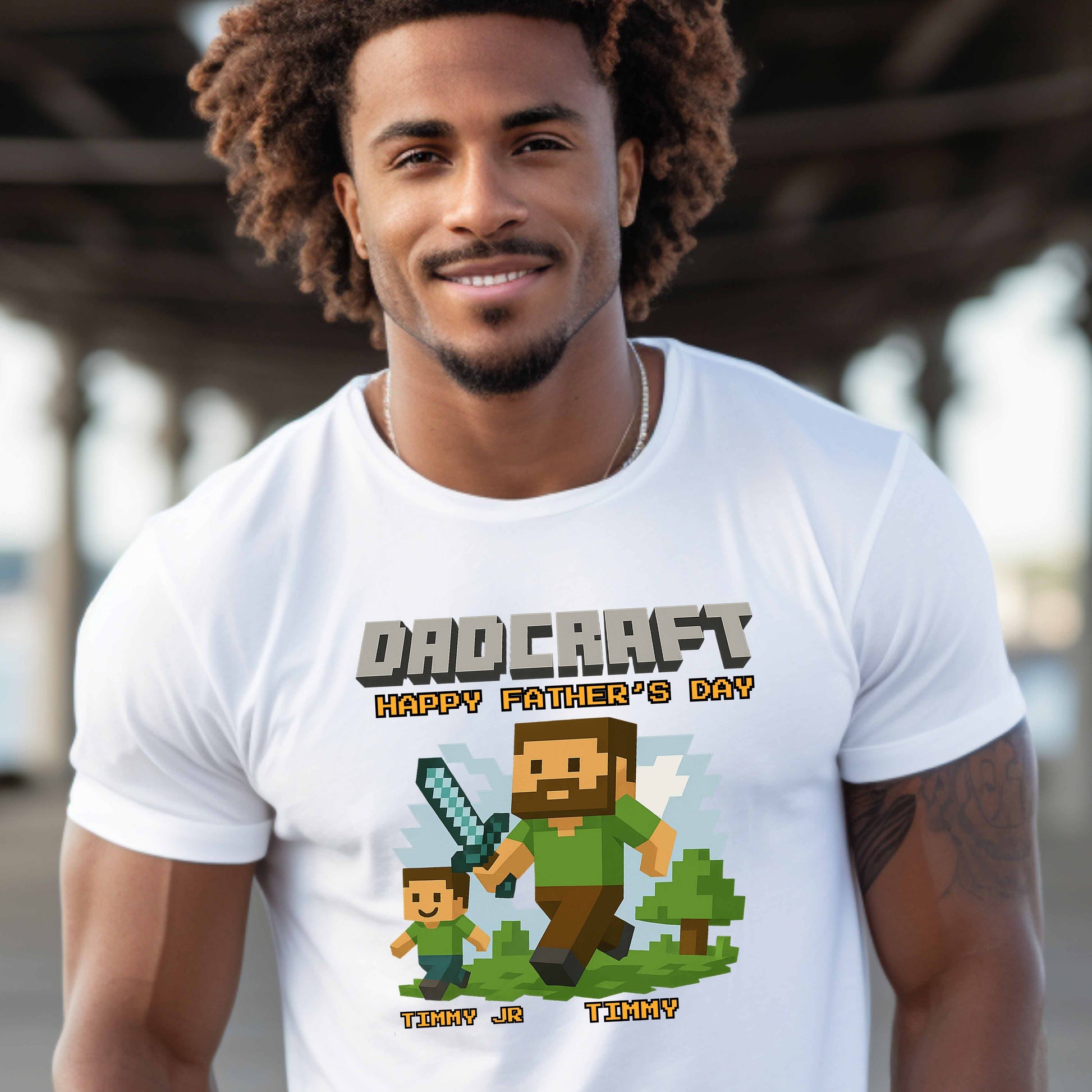Celebrate the special bond between father and son with our DADCRAFT Customizable T-Shirt. Inspired by the popular game Minecraft, this shirt allows you to customize the design for a personal touch. Show your love and create lasting memories with this unique and meaningful gift.