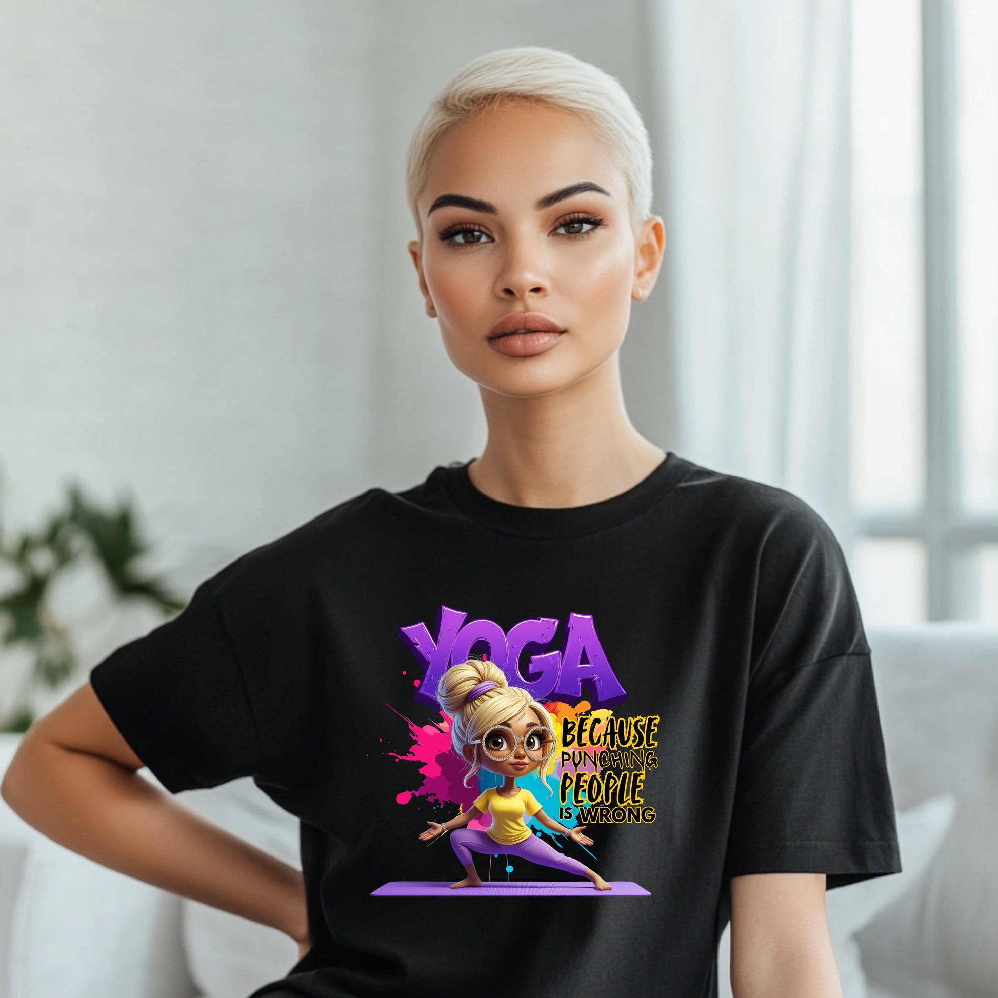 Add a touch of humor to your workout with this Funny Yoga T-Shirt. Crafted for comfort and style, it effortlessly blends soft fabric with a witty design that sparks smiles on and off the mat. Perfect for yoga lovers who want to stay relaxed and express their playful side, this tee makes every pose more fun. Elevate your fitness wardrobe with a shirt that brings both comfort and laughs.