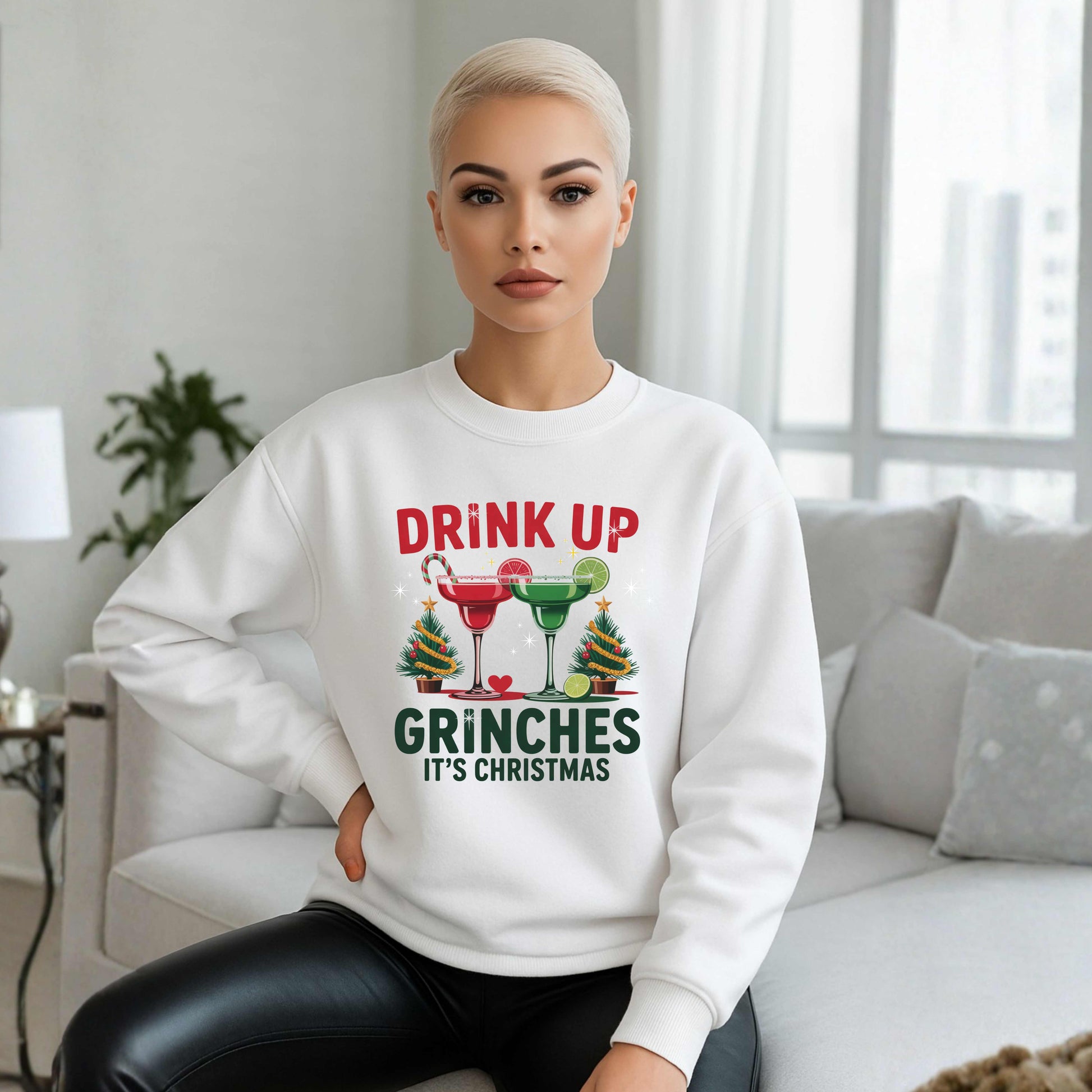 Drink Up Grinches It's Christmas Funny Crewneck Pullover Sweatshirt