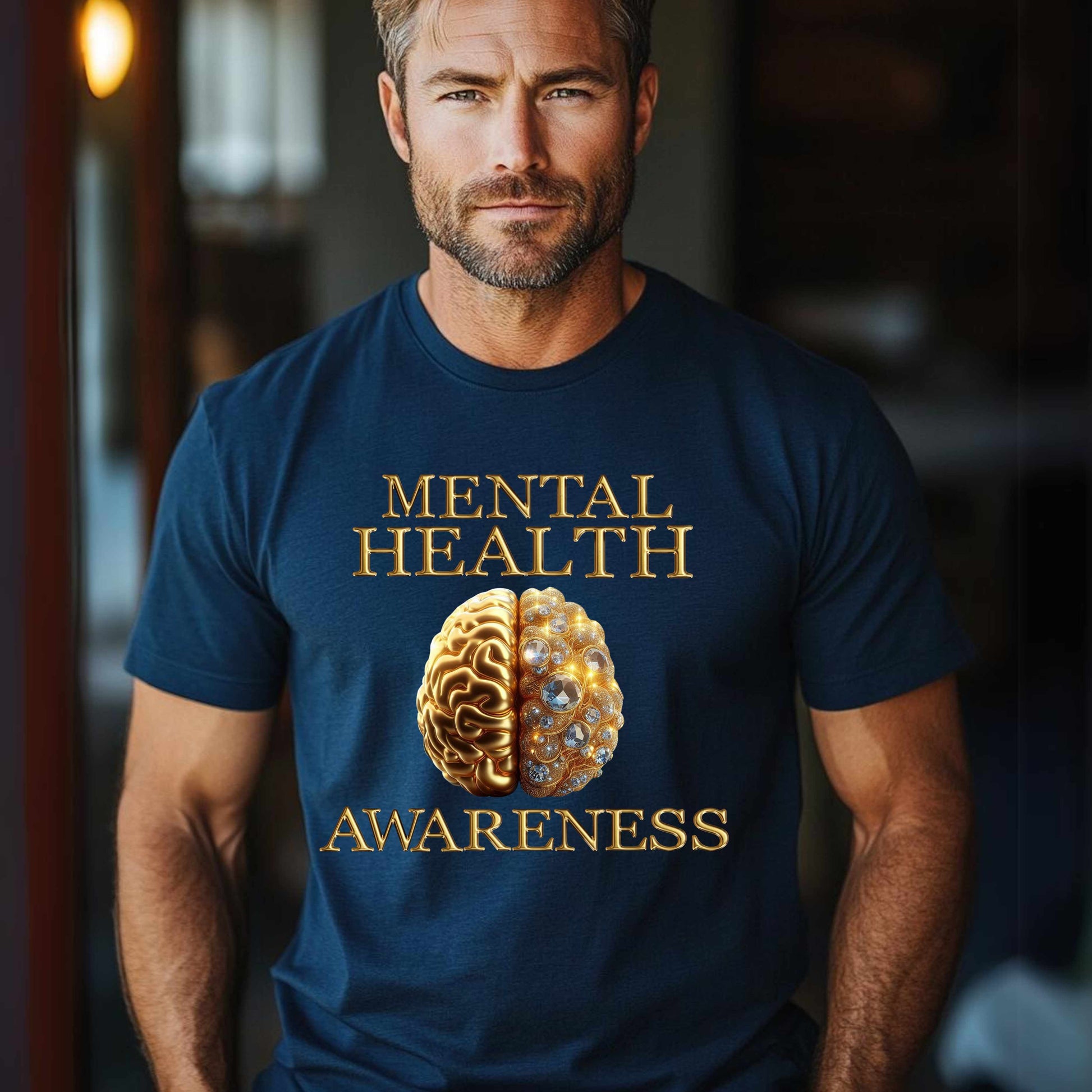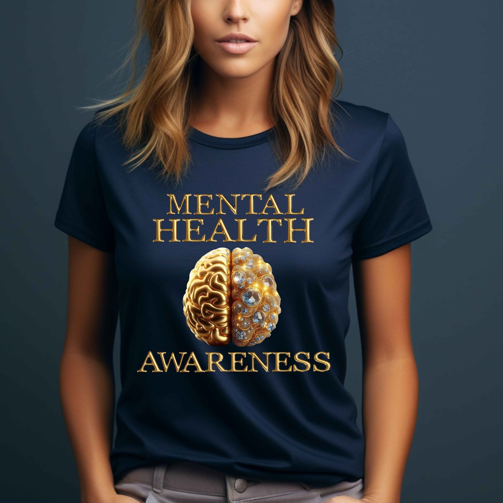 Show your support for mental health awareness with our gold t-shirt! Made with high quality materials, this shirt is both comfortable and stylish. Join the movement and help break the stigma surrounding mental health. Let's spread positivity and support together!