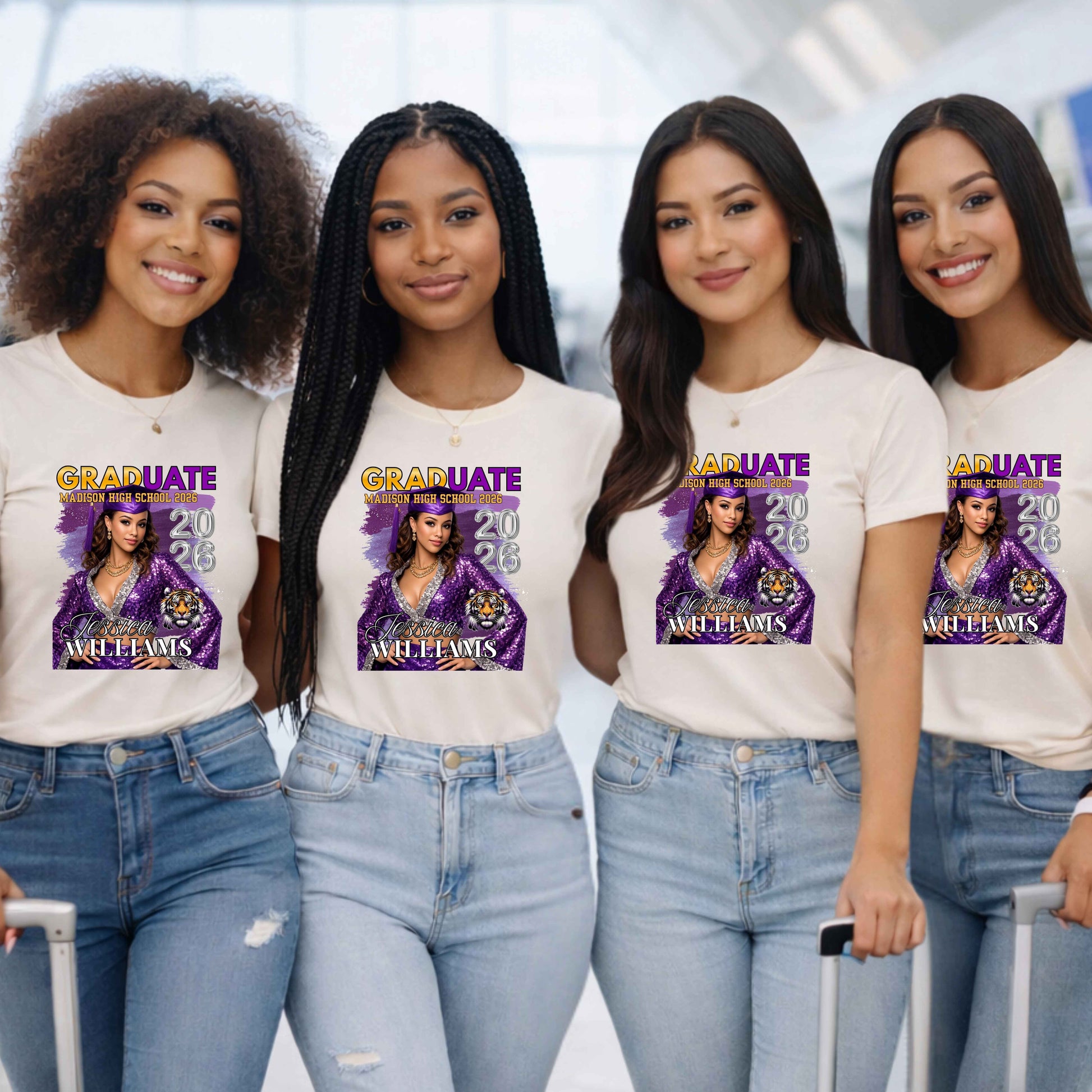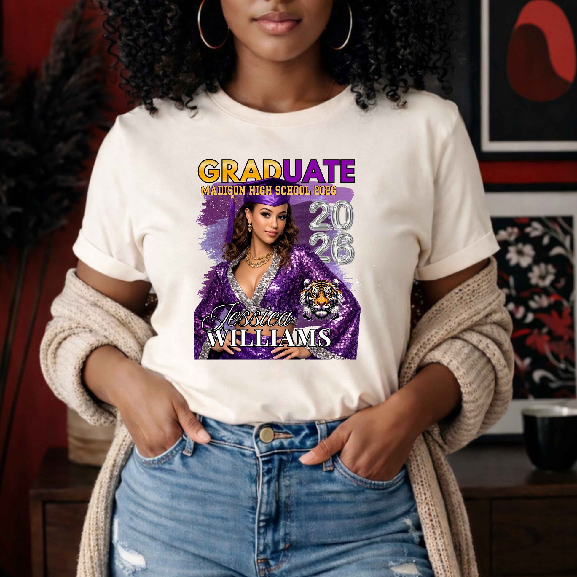 Celebrate your graduate's milestone with a custom Personalized Graduation 2026 T-Shirt designed just for them. Simply reach out to our team with your graduate's name and school colors, and we'll create a one-of-a-kind keepsake they'll treasure. Contact our friendly customer service representatives and they'll be ready to bring your vision to life, ensuring every detail reflects their achievement and personality. Perfect for graduation day, photos, or wearing with pride throughout the year. Make their special moment unforgettable with personalized style.