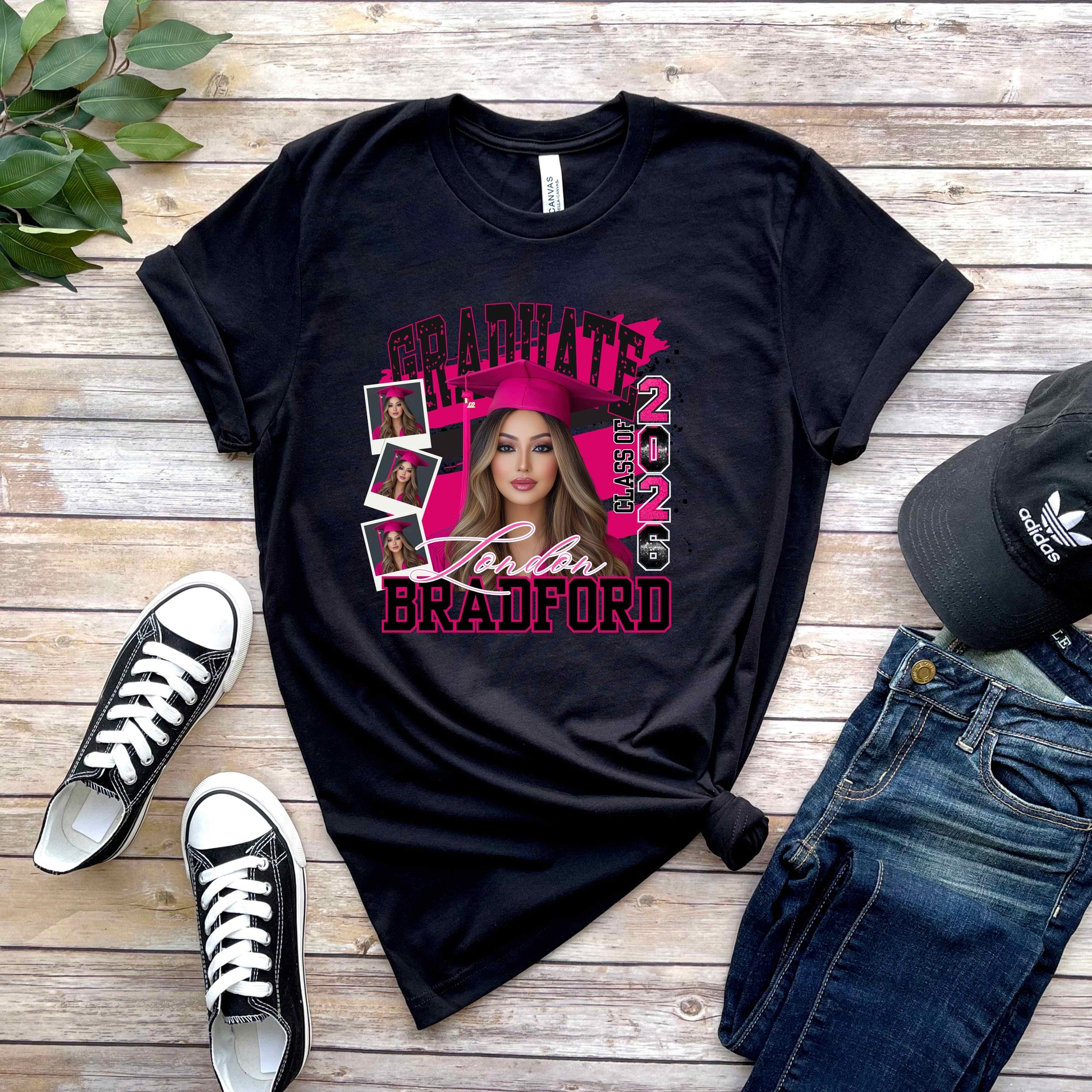 Celebrate your graduate's milestone with a custom Personalized Graduation 2026 T-Shirt designed just for them. Simply reach out to our team with your graduate's name and school colors, and we'll create a one-of-a-kind keepsake they'll treasure. Contact our friendly customer service representatives and they'll be ready to bring your vision to life, ensuring every detail reflects their achievement and personality. Perfect for graduation day, photos, or wearing with pride throughout the year. Make their special moment unforgettable with personalized style.