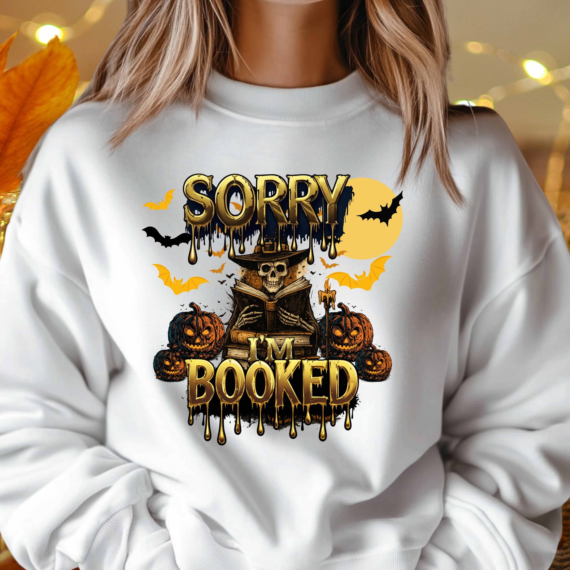 Sorry I'm Booked Book Lover Halloween Crewneck Pullover Sweatshirt