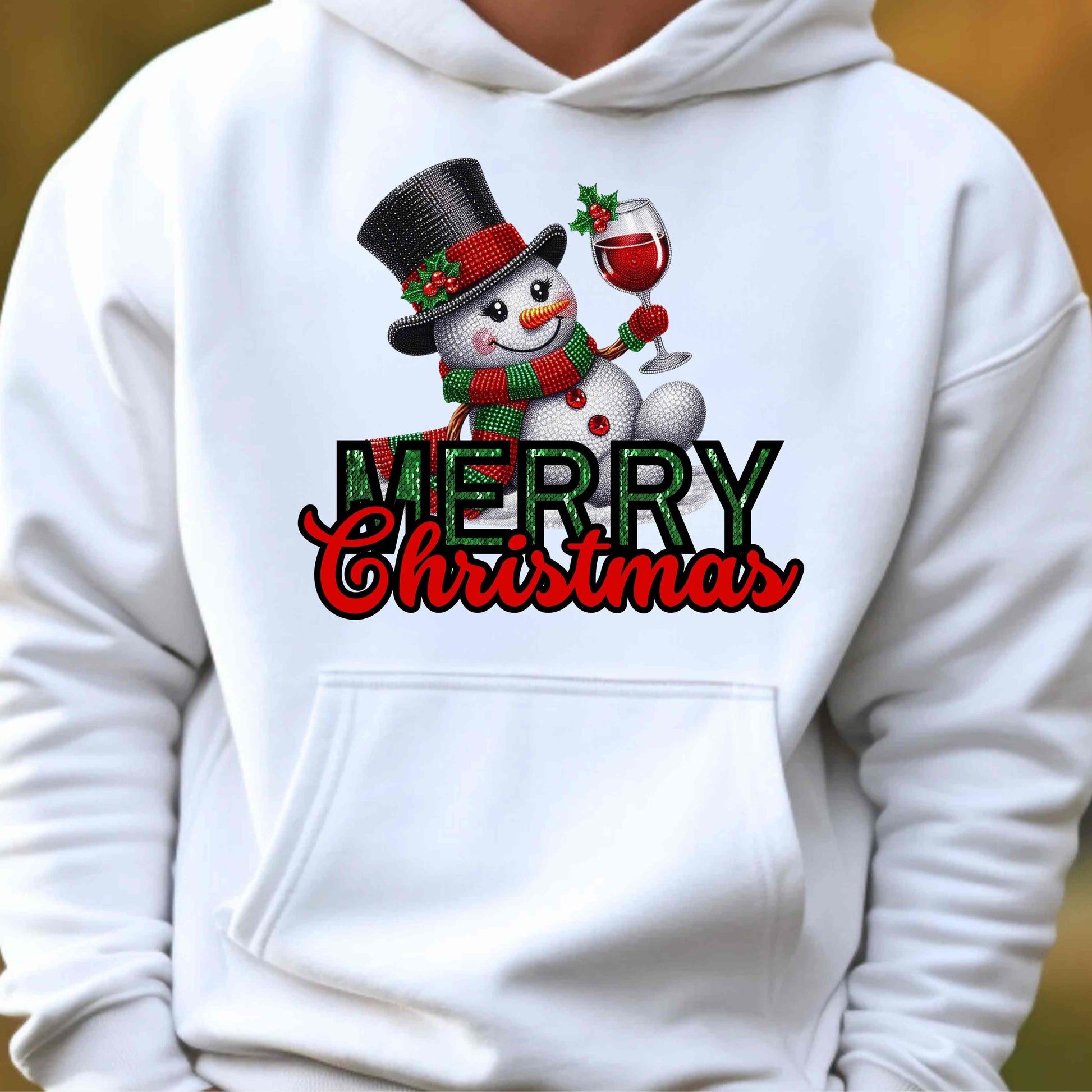 Elevate your winter wardrobe with our Sparkling Snowman Merry Christmas Pullover Hoodie! This cozy hoodie features a festive snowman design adorned with sparkling embellishments, perfect for bringing some holiday cheer to your outfits. Stay warm and stylish during the holiday season with this must-have hoodie!